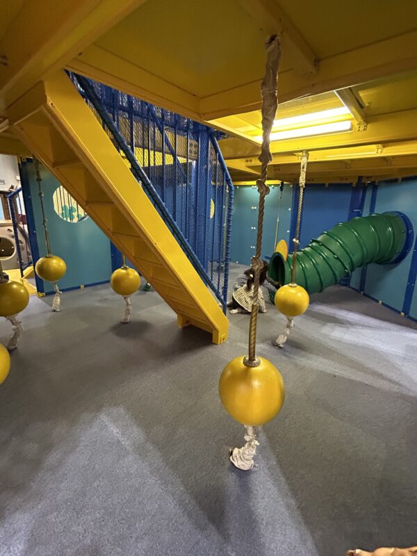 この遊具がすごいのは、横ではなく「縦」に広がる構造になっているところ。上り下りが多く、滑り台やトンネルなど立体的に楽しめるので、子どもたちは飽きずにずっと遊んでいました。