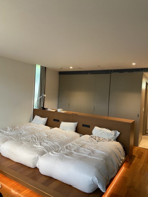 客室の中も木の香りが漂い、まるで森の中に住んでいるような心地よさ。デザイン性も高く、どこを切り取っても“映える空間”でした。